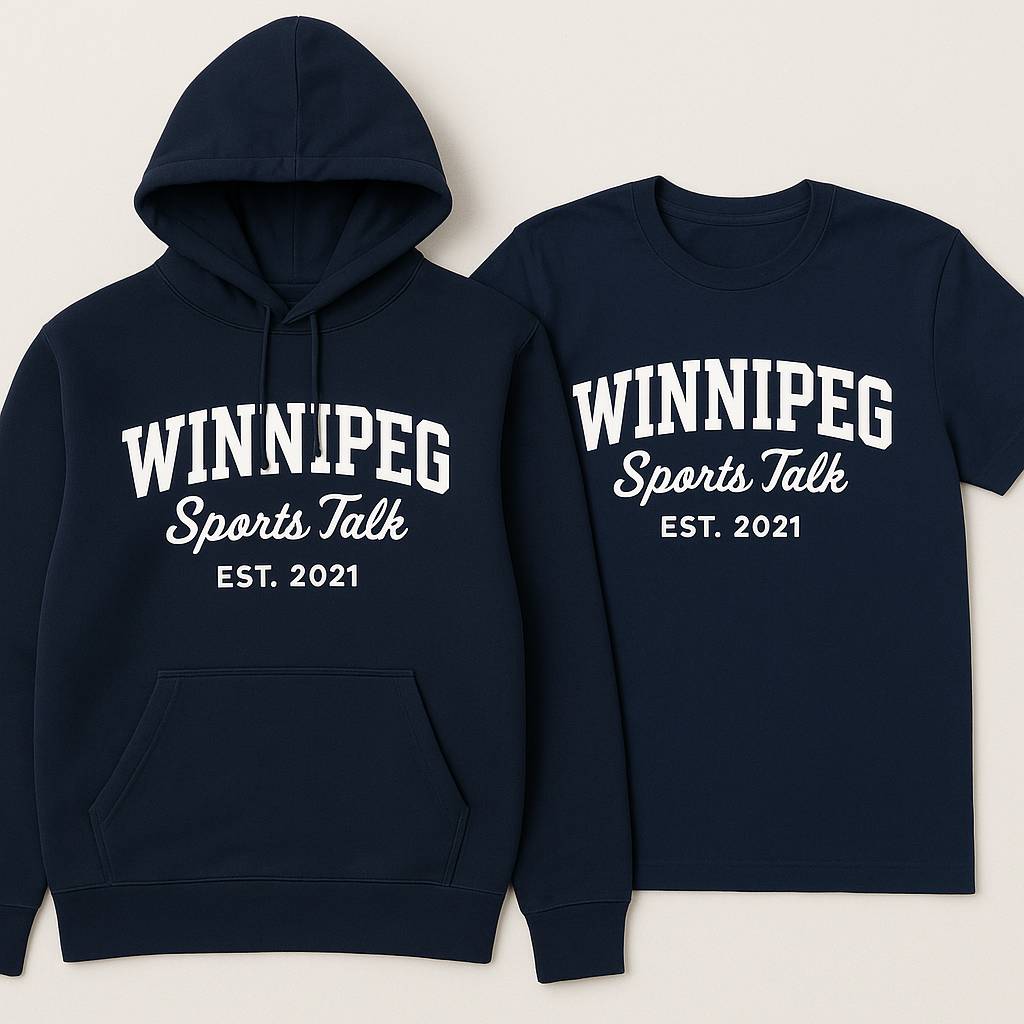 We’ve released a limited number of new Winnipeg Sports Talk collegiate hoodies and T-shirts, available now in our online shop — with shipping or local pickup.